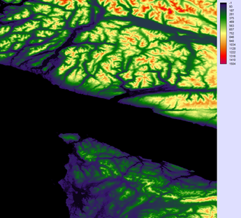 Elevation Values around the Strait of Juan de Fuca